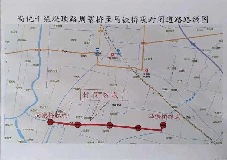 1月6日平原县公安局交通管理大队发布关于尚仇干渠堤顶路周寨桥至马铁桥段封闭施工的公告因市级重点工程——马颊河、德惠新河连通(尚仇干渠扩挖治理)工程施工,为确保尚仇干渠拓宽扩挖、土方外运、堤顶路重建等施工快速有序推进,同时保障周边群众人身安全,现决定施工期间对尚仇干渠堤顶路周寨桥至马铁桥段进行全面封闭。封闭期限为2026年1月6日至2026年7月31日,如遇极端天气等不可抗力影响,封闭时间会酌情延长。施工期间,过往车辆请提前规划绕行路线。施工封闭期间对广大群众造成的出行不便,敬请谅解!
